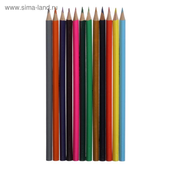 Карандаши двухцветные 12 цветов, 6 штук, корпус деревянный, треугольный, в картонной коробке