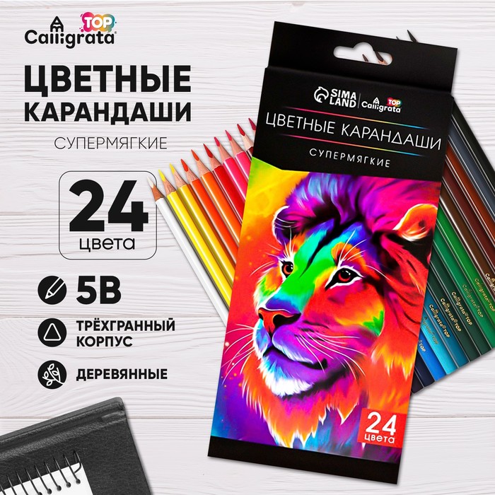 Карандаши 24 цветов TOP Calligrata, в картонной коробке, диаметр грифеля - 3мм, 5B
