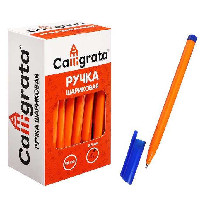 Ручка шариковая 0,7 мм, стержень синий, корпус оранжевый с синим колпачком