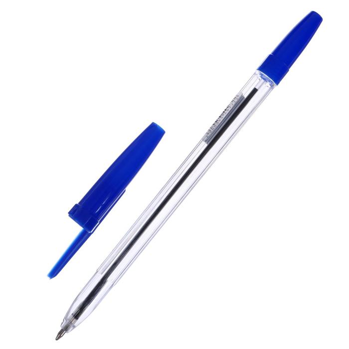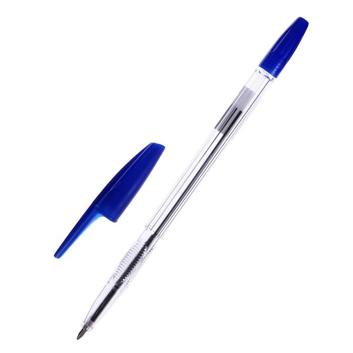 Ручка шариковая 0,7 мм, стержень синий, корпус прозрачный с синим колпачком