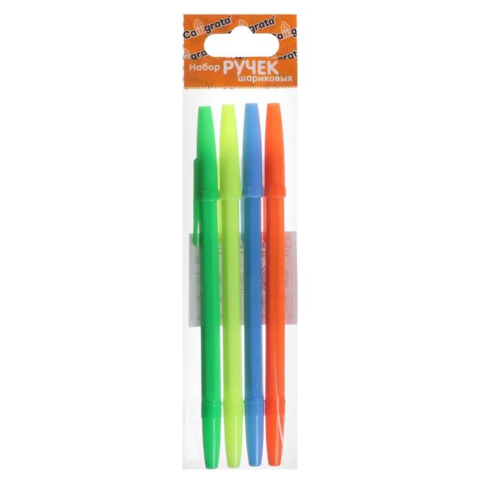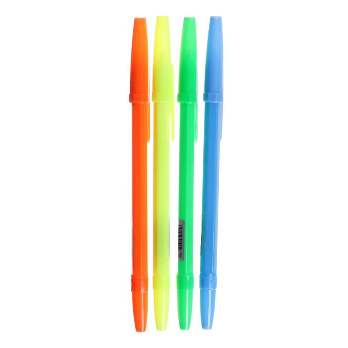 Набор ручек шариковых 4 штуки, стержень 0,7 мм синий, корпус НЕОН