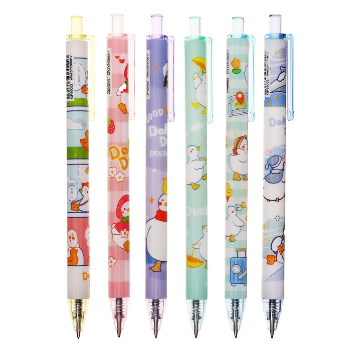 Ручка гелевая, автоматическая 0.5 мм, стержень синий, корпус с рисунком, МИКС (штрихкод на штуке)