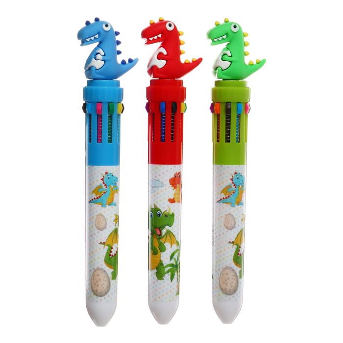 Ручка шариковая автоматическая, 10-ти цветная, "Дракон", МИКС