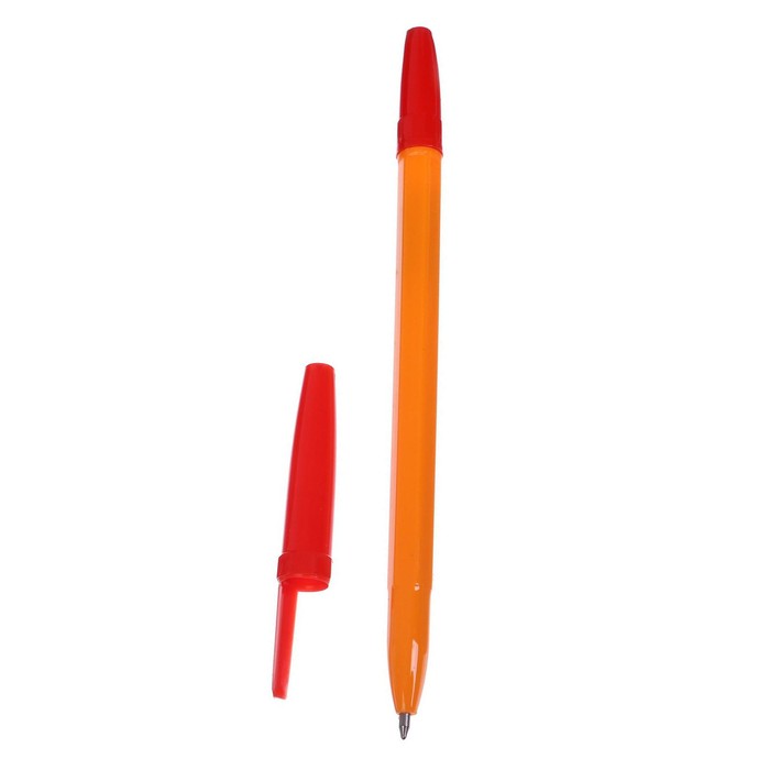 Ручка шариковая 0,7 мм, стержень красный, корпус оранжевый с красным колпачком