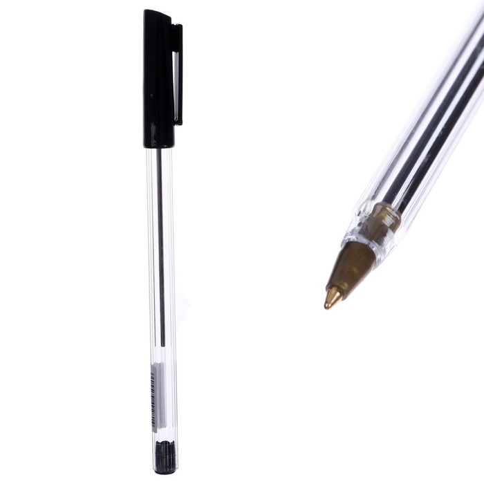 Ручка шариковая 0,7 мм, стержень чёрный, корпус прозрачный с чёрным колпачком