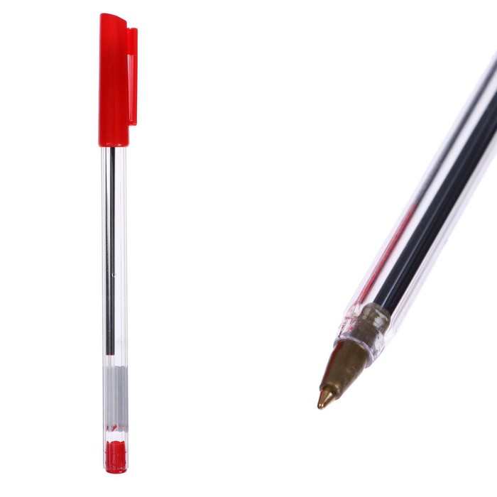 Ручка шариковая 0,7 мм, стержень красный, корпус прозрачный с красным колпачком