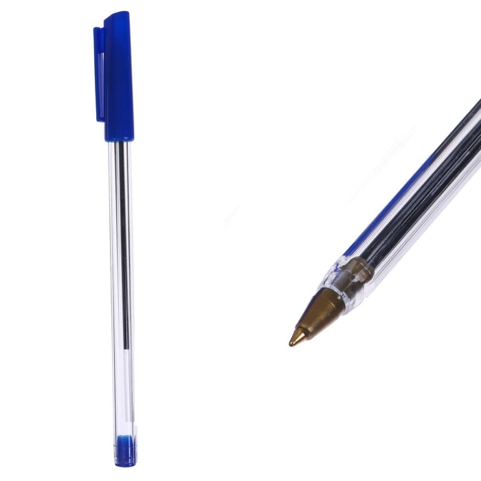 Ручка шариковая 0,7 мм, стержень синий, корпус прозрачный, колпачок синий