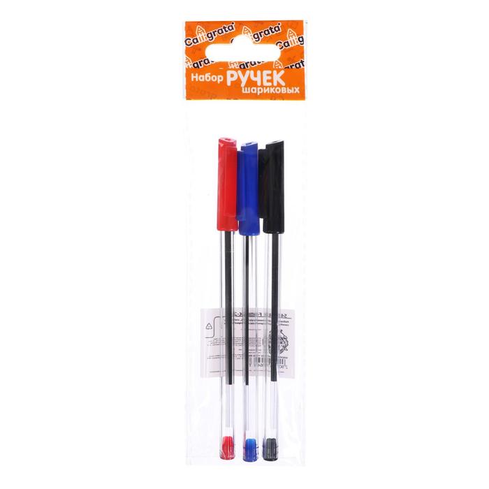 Набор ручек шариковых 3 цвета, стержень 1,0 мм, синий, красный, чёрный, корпус прозрачный