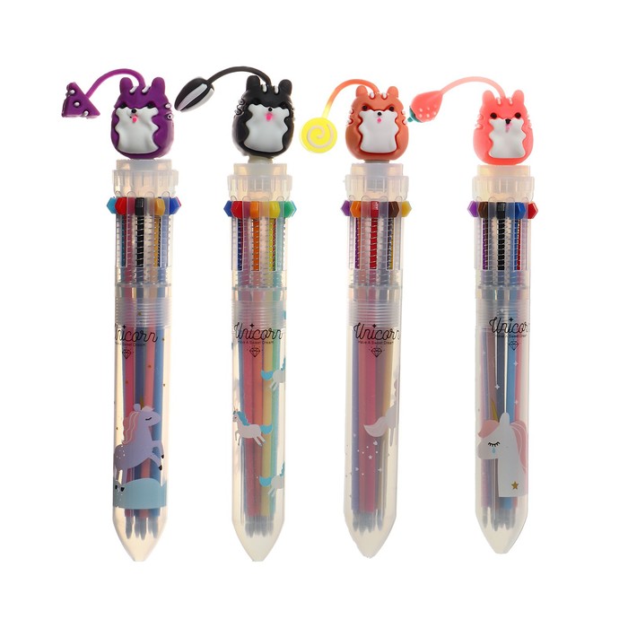 Ручка шариковая автоматическая, 10-ти цветная, "Зверушки", МИКС