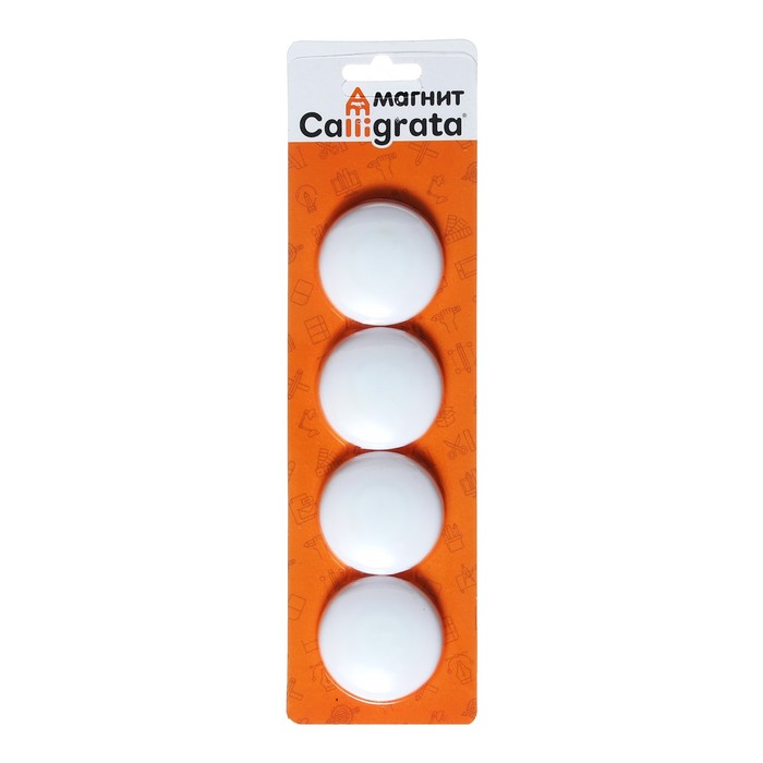 Набор магниты для доски d-4см, 4 штук, на блистере, белые