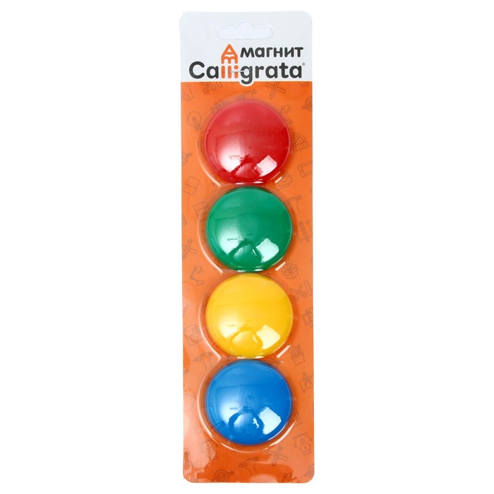 Набор магнитов для доски, 4 шт., d-4 см, на блистере, МИКС