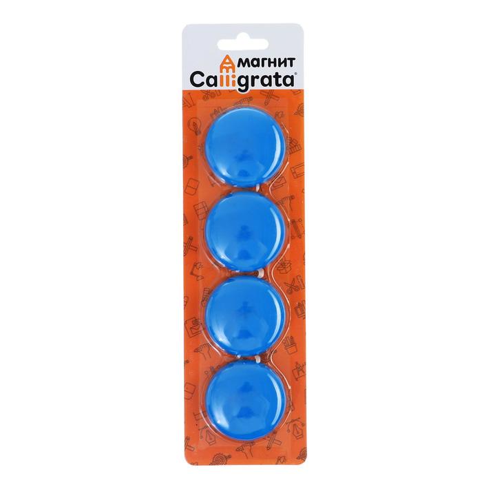 Магниты для доски, d-4 см, набор 4 штуки, блистер, синие