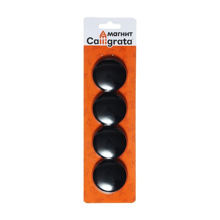 Набор магниты для доски d-4см, 4 штук, на блистере, черные