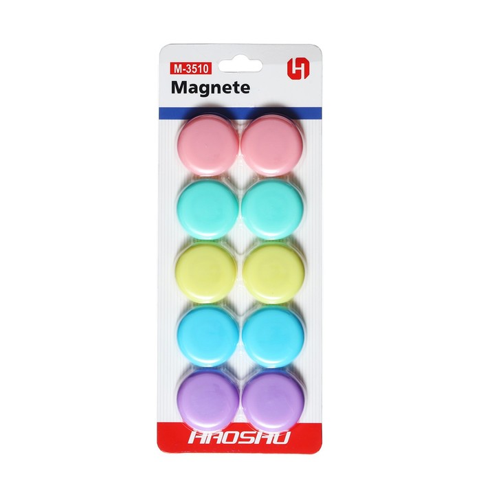 Набор магниты для доски d-3,5см, 10 штук, на блистере, пастель