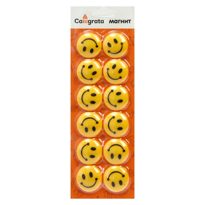 Магниты для доски, "Смайл", d - 2 см, набор 12 штук, блистер, Calligrata