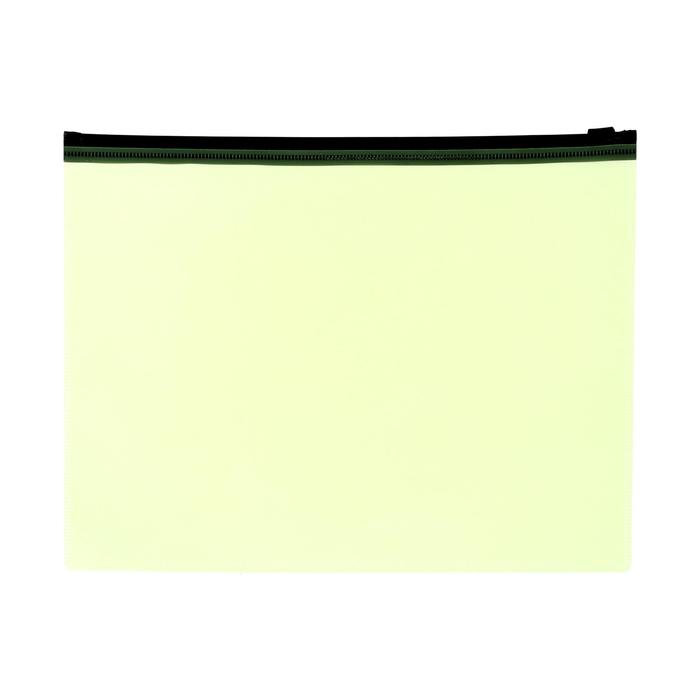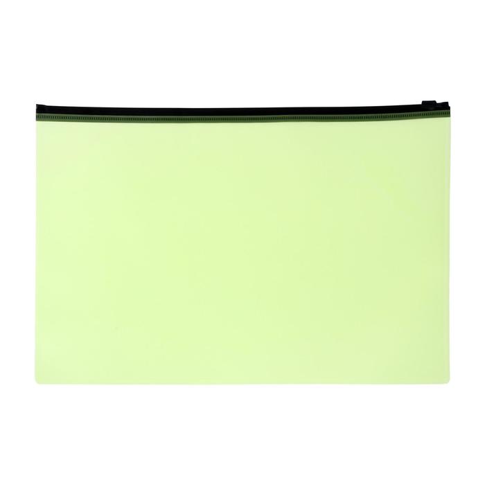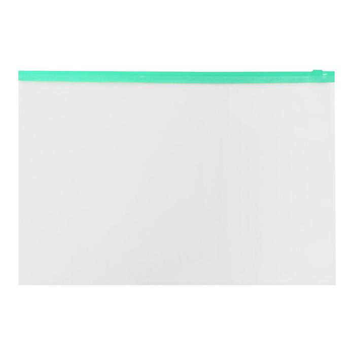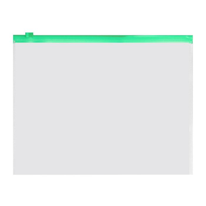 Папка-конверт на ZIP-молнии A4, 150 мкм, Calligrata, прозрачная, зелёная молния