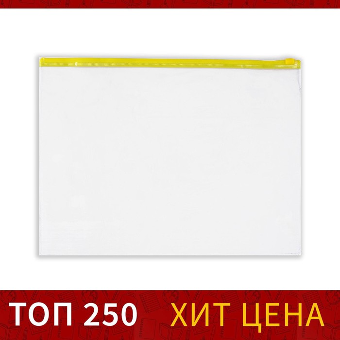 Папка-конверт на ZIP-молнии A4, 150 мкм, Calligrata, прозрачная, жёлтая молния