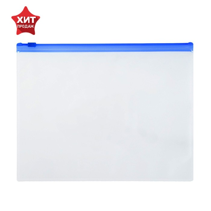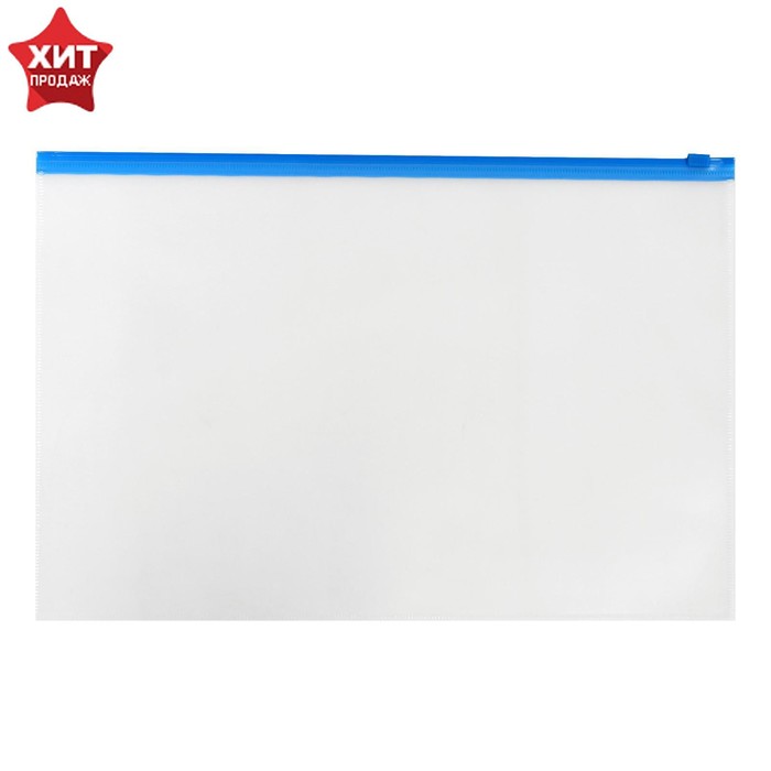 Папка-конверт на ZIP-молнии A4, 150 мкм, Calligrata, прозрачная, синяя молния