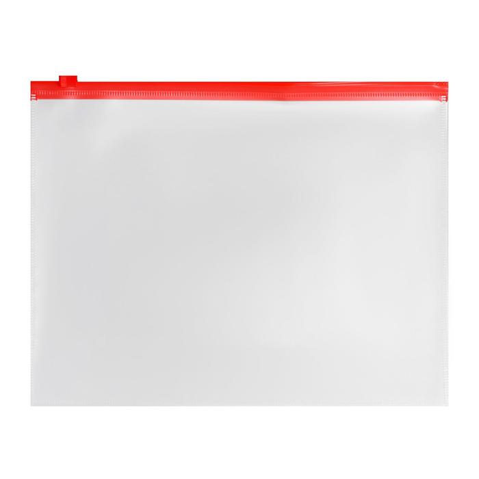 Папка-конверт на ZIP-молнии A4, 150 мкм, Calligrata, прозрачная, красная молния