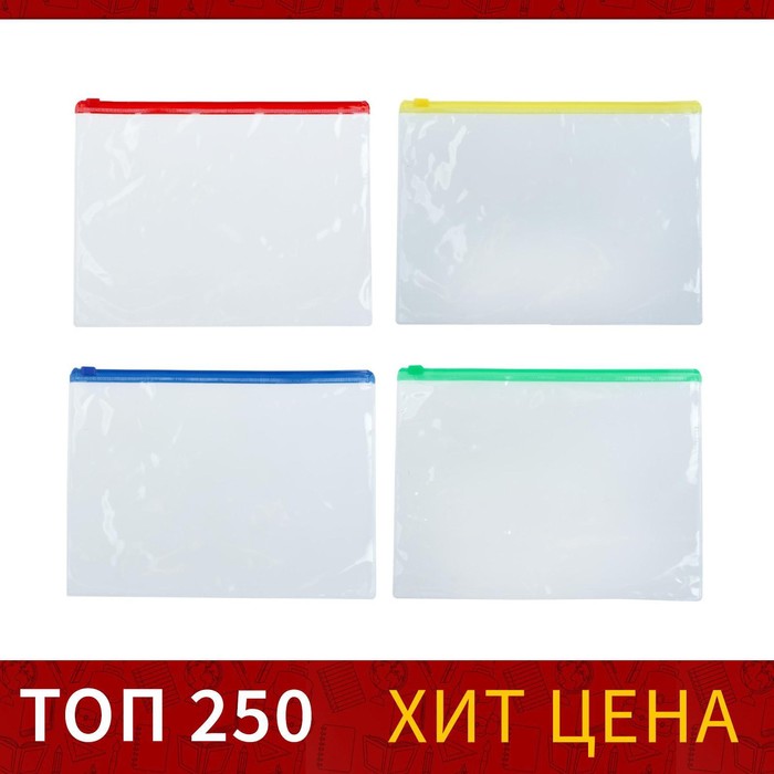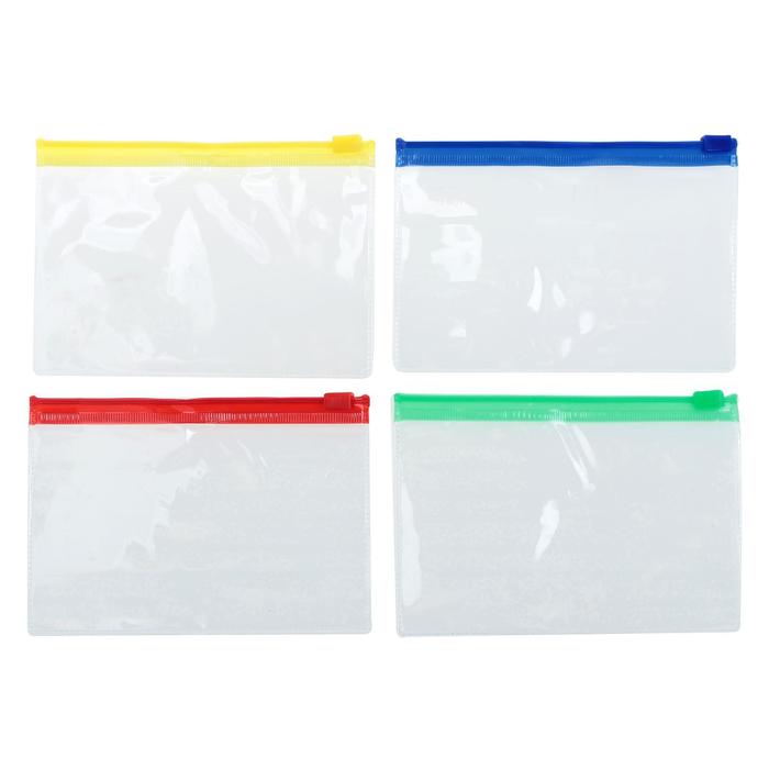 Папка-конверт на ZIP-молнии Calligrata А65 (122 х 240 мм), 100 мкм, прозрачная, МИКС
