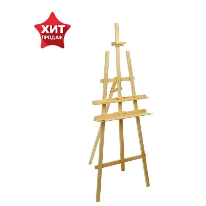 Мольберт тип «Лира» 175 х 62 см, (полка 60 х 12 см, с двумя подстаканниками), с бегунком, неокрашенное дерево, Calligrata №7