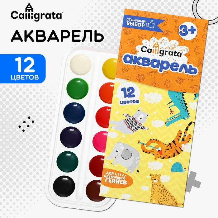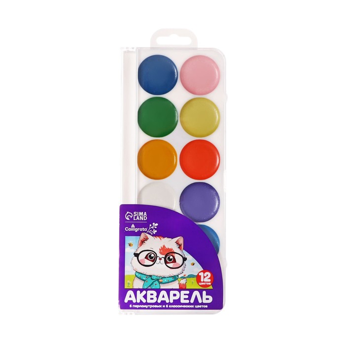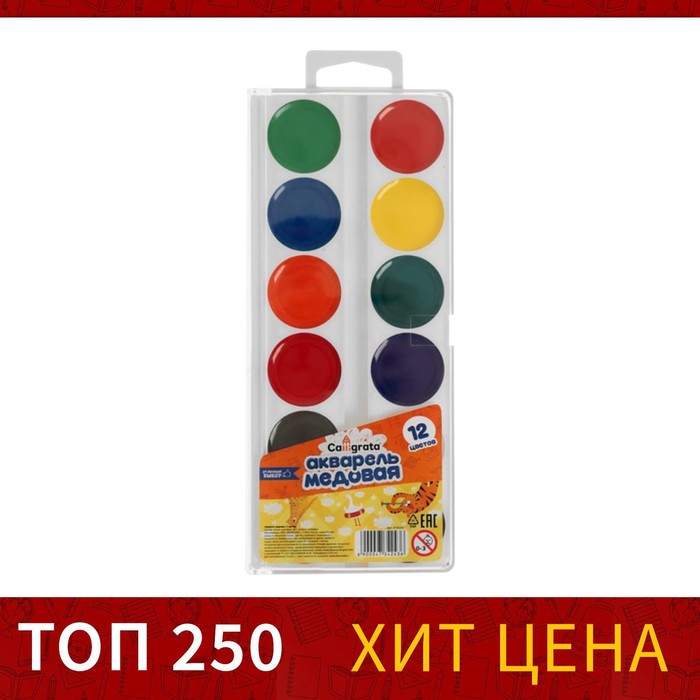 Акварель 12 цветов Calligrata, медовая, без кисти, пластик, МИКС