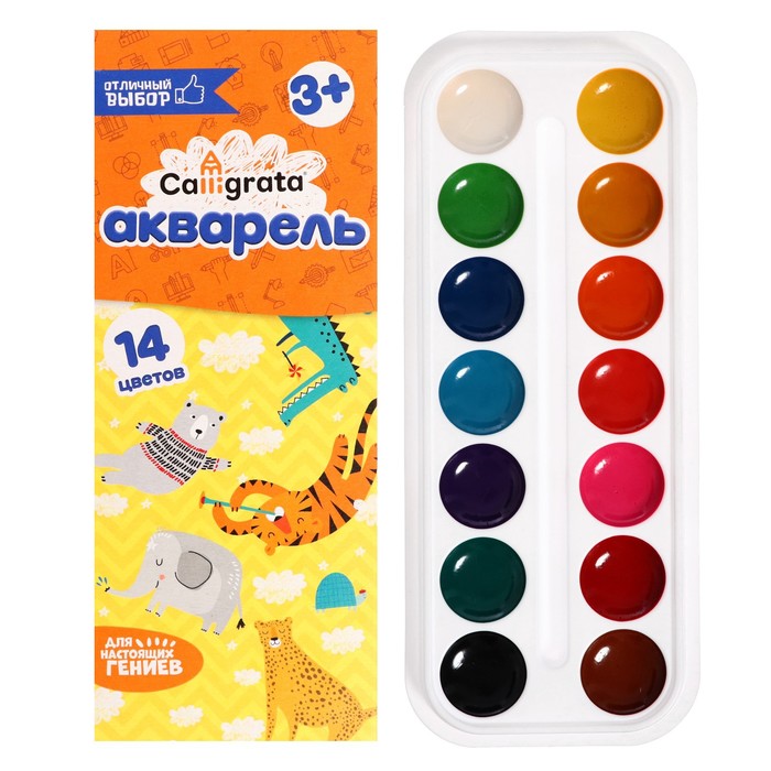 Акварель 14 цветов Calligrata, в мягком пластике, картонный пенал, без кисти