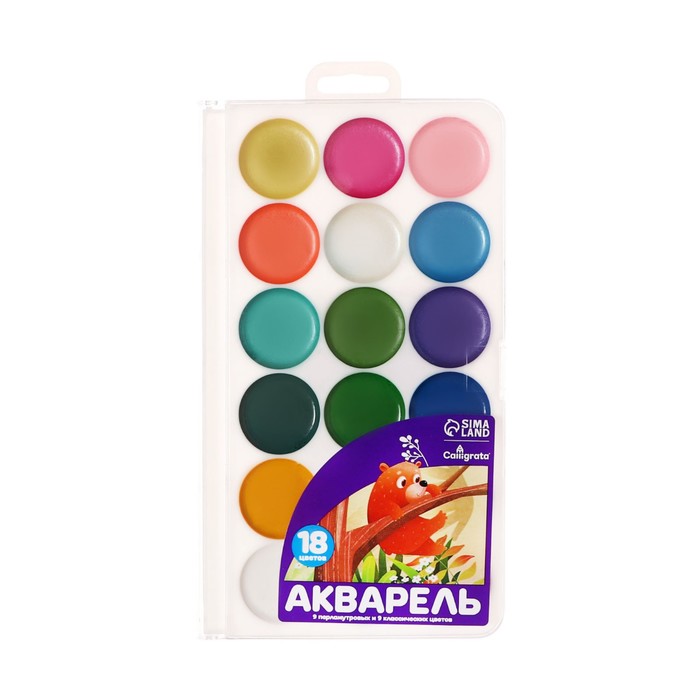 Акварель18 цветов (9 классических + 9 перламутровых) Calligrata