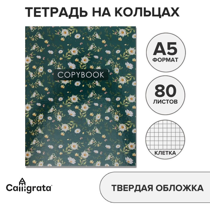 Тетрадь на кольцах A5 80 листов в клетку Calligrata "Цветы. Паттерн", обложка 7БЦ, без вырубки под кольца, блок офсет