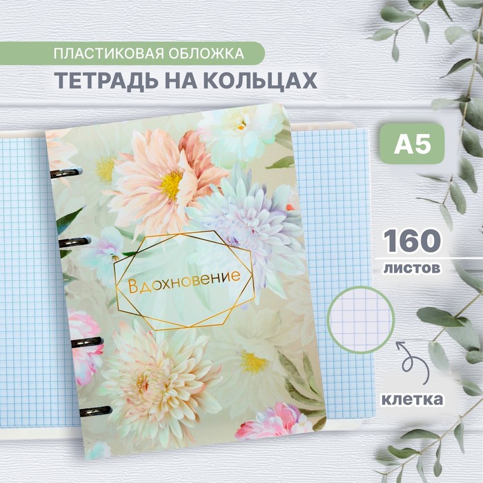 Тетрадь на кольцах A5 160 листов в клетку Calligrata "Вдохновение", пластиковая обложка, блок офсет
