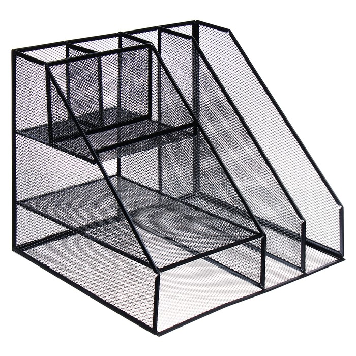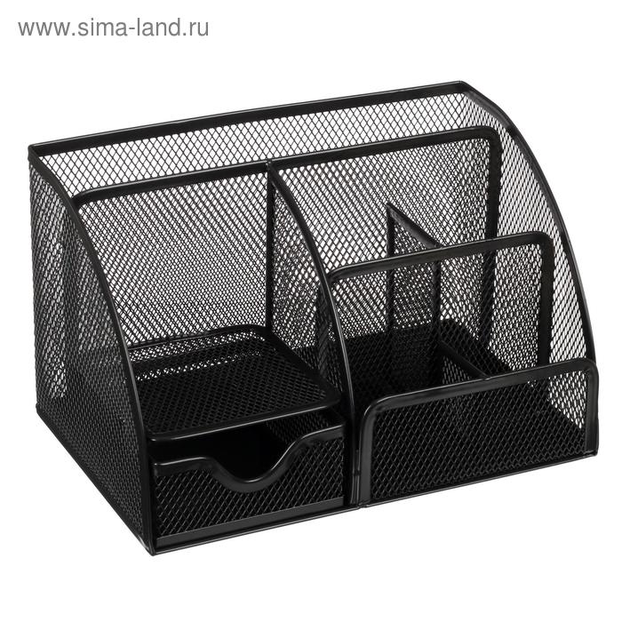 Подставка для канцелярских принадлежностей, 5 отделений, сетка, металл, чёрная