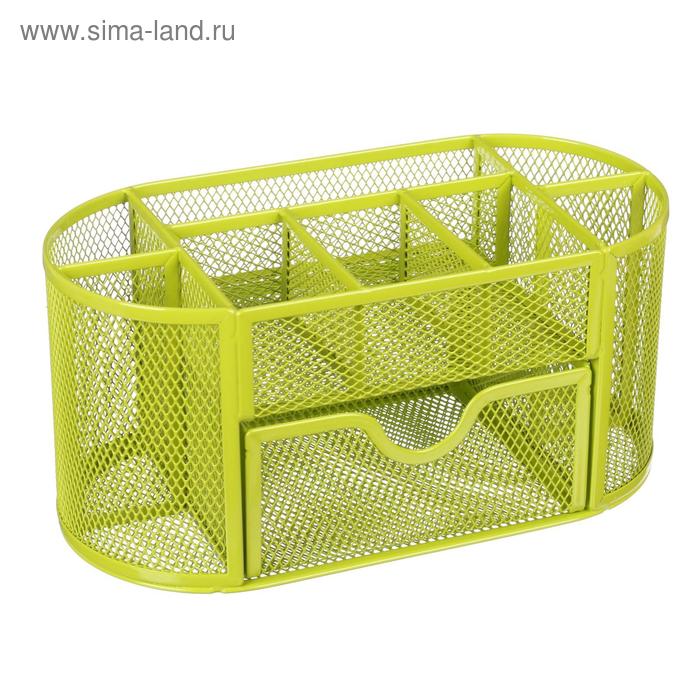 Подставка для канцелярских мелочей 9 отделений, сетка металл, зелёная