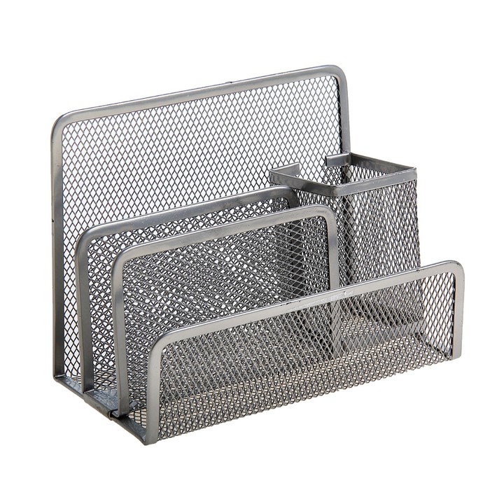 Подставка для канцелярских мелочей 4 отделения, металлическая сетка, цвет серый