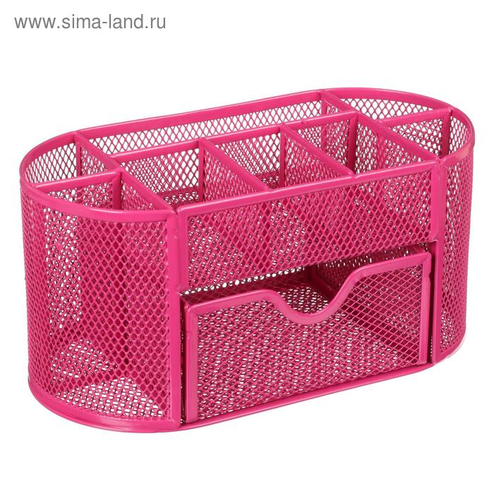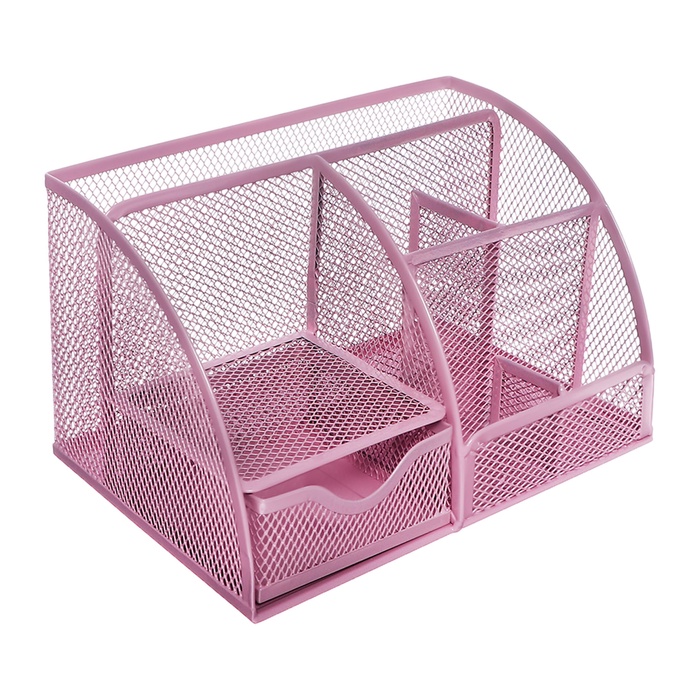 Подставка для канцелярских мелочей 7 отделений, сетка металл, розовая