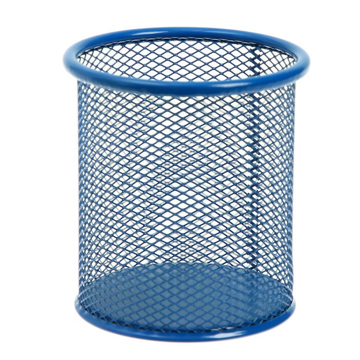Стакан для пишущих принадлежностей круглый, металлическая сетка, синий