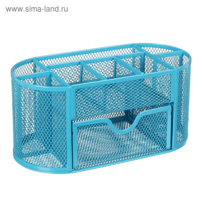 Подставка для канцелярских мелочей 9 отделений, сетка металл, голубая