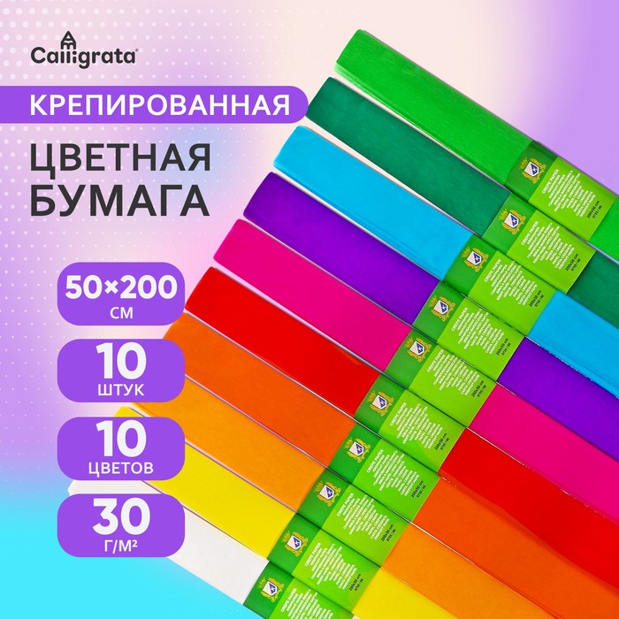 Набор бумаги крепированной в рулоне, 10 штук/10 цветов, 50 х 200 см, 30 г/м2