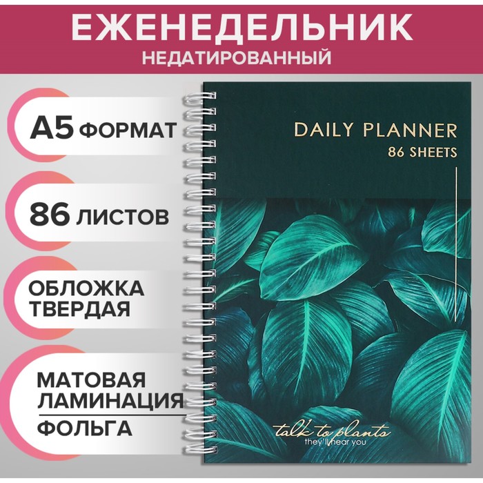 Еженедельник на гребне недатированный А5, 86 листов, картон 7БЦ "Сегодня ТВОЙ день", матовая ламинация, фольга