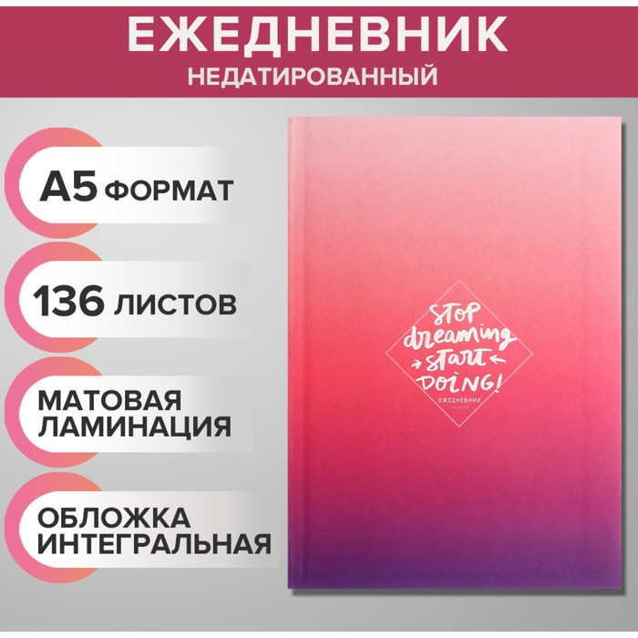 Ежедневник недатированный на сшивке А5, 128 листов, картон 7БЦ, матовая ламинация, выборочный лак "Следуй за мечтой"