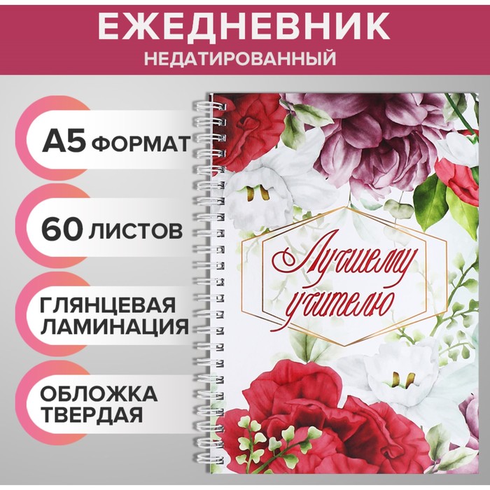 Ежедневник недатированный на гребне, А5, 60 листов, картон 7БЦ "Лучшему учителю", глянцевая ламинация