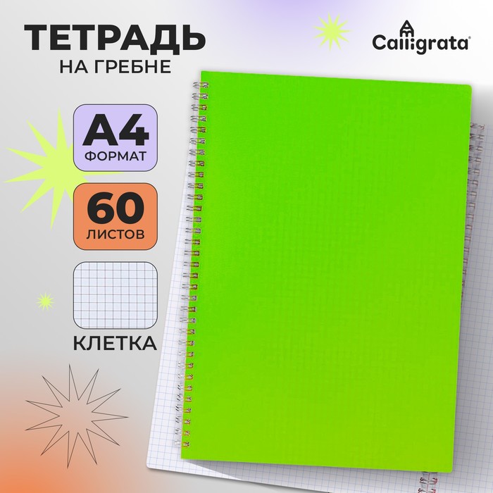 Тетрадь на гребне A4 60 листов в клетку Calligrata Зелёная, пластиковая обложка, блок офсет