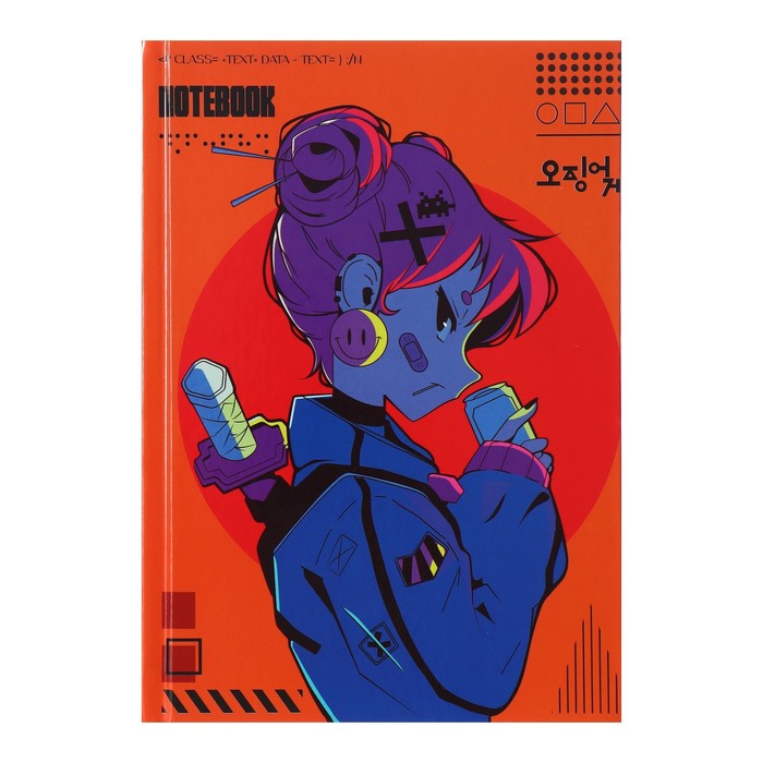 Колледж-тетрадь в твердой обложке 7БЦ, А5, 120 листов, Аниме киберпанк. НЕОН, блок в клетку, глянцевая ламинация