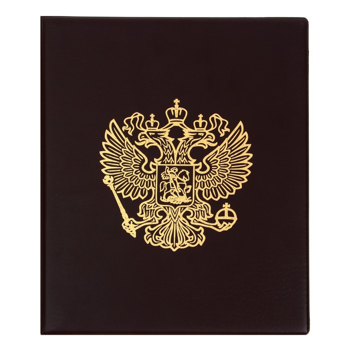 Альбом для монет на кольцах, формат Оптима 230 х 265 мм Calligrata "Герб", входит до 20 листов, обложка ПВХ, коричневый
