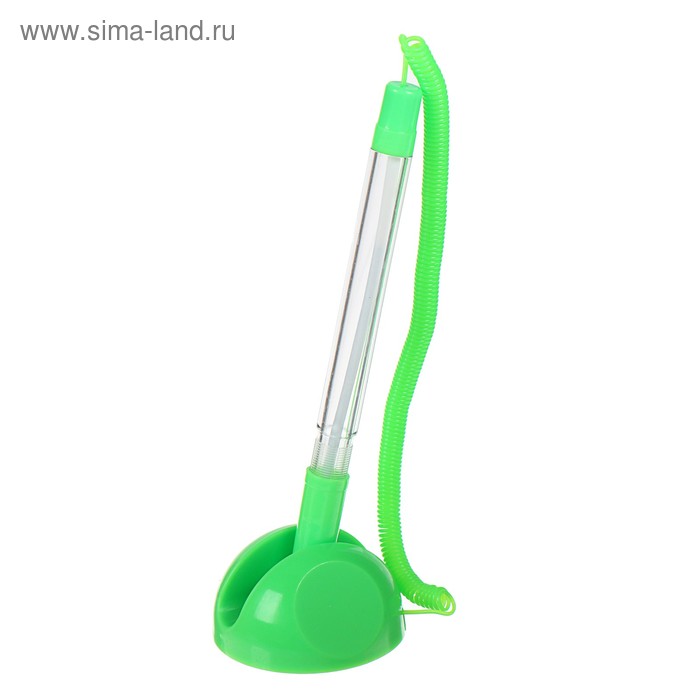 Ручка шариковая 0,5 мм на подставке "Стоп" с липучкой и шнуром стержень синий, корпус ЗЕЛЕНЫЙ (штрихкод