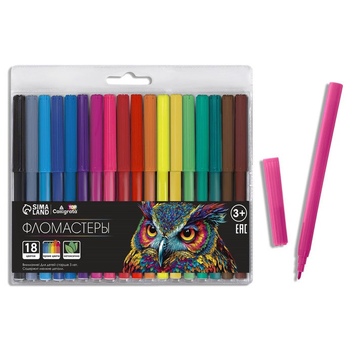 Фломастеры Calligrata, 18 цветов, в картонной коробке, вентилируемый колпачок