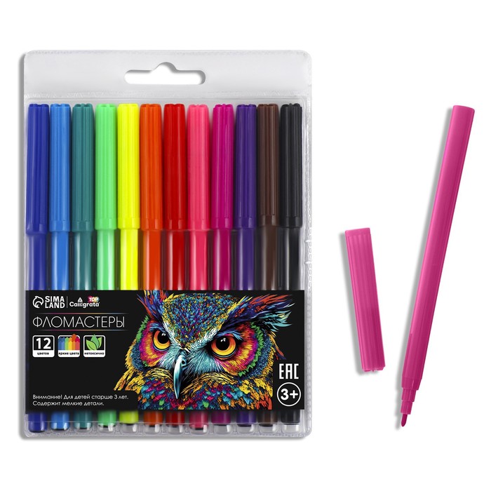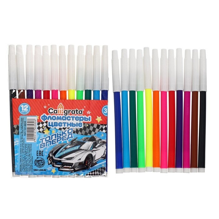 Фломастеры 12 цветов Calligrata "Машинка", невентилируемый колпачок