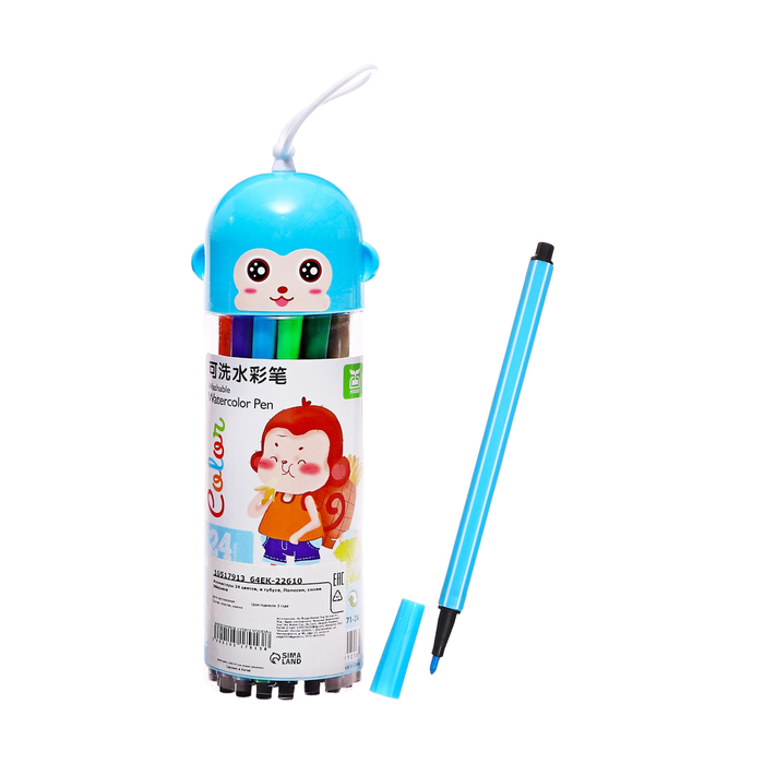 Фломастеры 24 цветов, в тубусе, Полоски, синяя Обезьяна