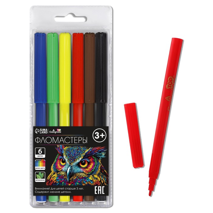 Фломастеры 6 цветов, TOP Calligrata, в картонной коробке