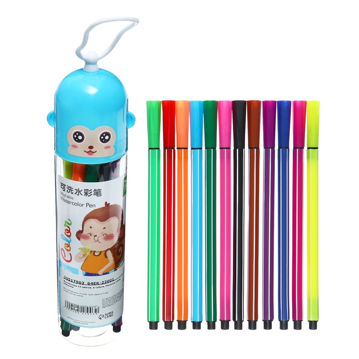 Фломастеры 12 цветов, в тубусе, синяя "Обезьянка"