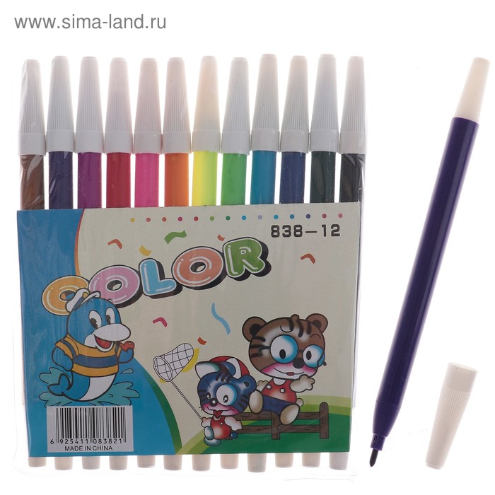 Фломастеры 12 цветов "Зверюшки", в PVC пакете, невентилируемый колпачок